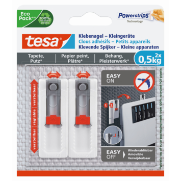 Lot de 2 clous adhésifs ajustables petits appareils Tesa pour papier peint et plâtre blanc 0,5 kg