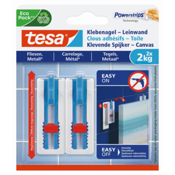Avec ce clou adhésif Tesa, vous pouvez accrocher une peinture sur toile très facilement et sans perçage. Ce clou adhésif peut être utilisé sur les carreaux (céramiques) et les surfaces métalliques. De cette façon, vous n'avez pas besoin de percer et vous travaillez rapidement, proprement et sans endommager la surface. Ce clou adhésif Tesa est lui-même réglable afin que votre toile soit toujours de niveau. Le paquet contient 2 crochets avec une capacité de charge maximale de 2 kg. Vous cherchez un autre clou adhésif de Tesa ? GAMMA a également d'autres variantes dans sa gamme.
