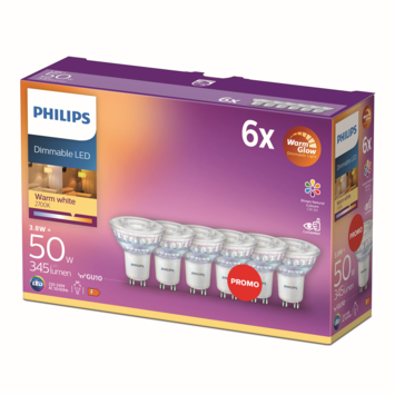 Lot de 6 ampoules spot LED Philips GU10 warm glow