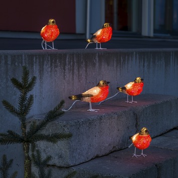 Créez une chaleureuse ambiance de Noël grâce aux décorations GAMMA. Cet éclairage de Noël comprend 5 bouvreuils en acrylique de la marque suédoise Konstsmide. Ils sont reliés par un cordon et espacés de 1 m, le cordon d’alimentation ayant une longueur de 4 m. Les 40 LED lumière blanche froide garantissent une bonne visibilité dans l’obscurité. Convient pour l’extérieur.