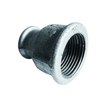 Raccordez vos tuyauteries entre elles avec les pièces galvanisées de Van Marcke. Disponibles en différentes versions et différents diamètres. Ce manchon de réduction (fig. 240) mesure 4/4" de diamètre d'un côté et 3/4" de l'autre.