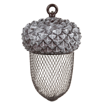 Fabriquée d’après la forme d’un gland, en métal et polyrésine (un mélange de pierre et résine de synthèse), cette mangeoire est une solution originale pour nourrir les oiseaux de cacahuètes ou de graines.