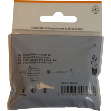 Fermeture en acier galvanisé en forme de D d'une longueur de 28 mm, d'une épaisseur de 8 mm et d'une ouverture de mâchoire de 1,6 mm. La manille en D est utilisée pour connecter facilement des cordons ou des chaînes. Une déconnexion rapide et facile est également possible avec cette fermeture. Lot de 2 pièces sous blister.