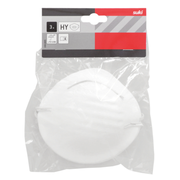 Pendant les travaux, le masque hygiénique Suki te protège contre la poussière gênante qui n'est pas nocive pour la santé. Le masque n'est en effet pas un équipement de protection et ne protège donc pas contre les substances nocives. Cependant, tu travailles de manière beaucoup plus hygiénique, car le masque hygiénique couvre la bouche et le nez. Tu fixes le masque avec la forme métallisée du nez à l'aide d'un élastique de maintien. Les masques sont emballés par 3 pièces. Le masque hygiénique de Suki est également disponible en paquet de 10 pièces.