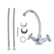 Ce robinet de cuisine Atlantic Louise à 2 boutons avec bec en C chromé fait partie de la série de robinets Atlantic Louise. Les boutons de commande en croix sont caractéristiques de la série Louise. Dans cette série, vous pouvez choisir entre des mitigeurs à deux boutons ou des robinets thermostatiques. Grâce à la garantie constructeur de 5 ans, vous êtes assuré d'un bon achat. Ce robinet de cuisine Louise est doté d'un bec haut pivotant. Les disques en céramique du robinet facilitent la fermeture correcte du robinet. Un autre avantage majeur est que les robinets à disques en céramique nécessitent peu d’entretien. Les robinets Atlantic sont fournis avec le matériel de raccordement. Les dimensions de raccordement des tuyaux flexibles fournis sont de 3/8".