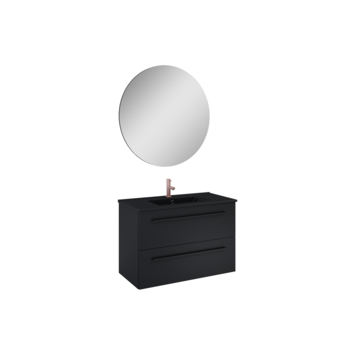 Meuble de salle de bain Atlantic Stella 80 cm noir mat avec miroir, lavabo noir et poignées noires395.40