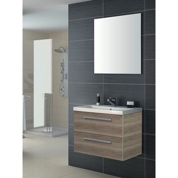 Pas de salle de bains tendance sans ces élégants meubles Hera. Les meubles sont fabriqués en panneaux d'aggloméré solides et disponibles en couleur blanche ou bois. Ensemble blanc composé d'un lavabo de 60 cm avec meuble suspendu à 2 tiroirs softclose et d'un joli miroir. Matériel de fixation inclus. Hors robinet, accessoires, siphon et évacuation. Également disponible avec lavabo de 80 cm et colonne.