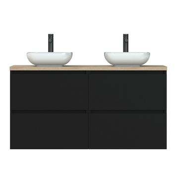 Meuble de salle de bain Karlo Tiger 120 cm noir mat avec plan vasque chêne et vasque céramique blanche