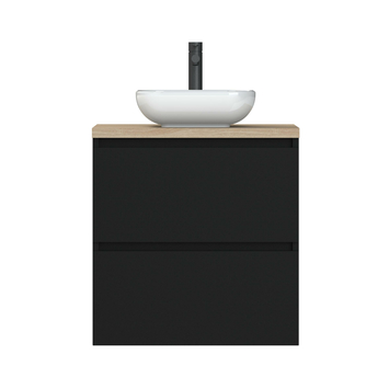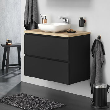 Meuble de salle de bain Karlo Tiger 60 cm noir mat avec plan vasque chêne et vasque céramique blanche