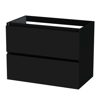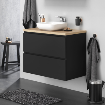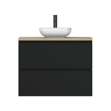 Meuble de salle de bain Karlo Tiger 80 cm noir mat avec plan vasque chêne et vasque céramique blanche