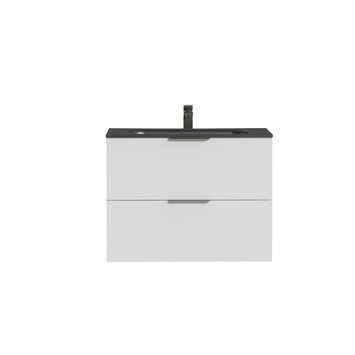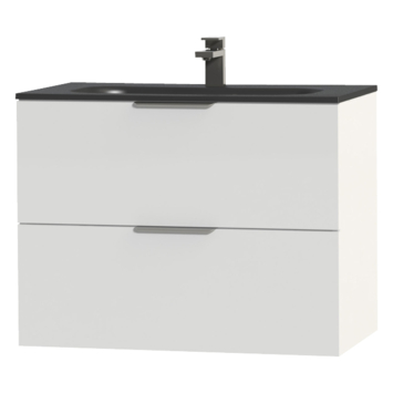 Meuble de salle de bain Studio Tiger 80 cm blanc brillant avec lavabo polybéton noir mat poignée plate inox