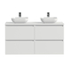 Meuble de salle de bain Tiger Karlo 120 cm blanc brillant avec plan lavabo en bois laqué blanc et 2 vasques à poseren céramique blanche
