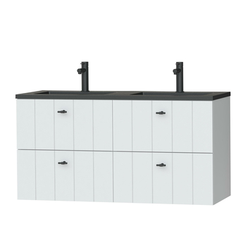 Meuble de salle de bain Tiger Maryport 120 cm blanc mat avec lavabo polybéton noir mat et poignées noir mat
