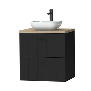 Meuble de salle de bain Tiger Maryport 60 cm noir mat avec plan lavabo chêne clair, vasque à poser et poignées noir mat