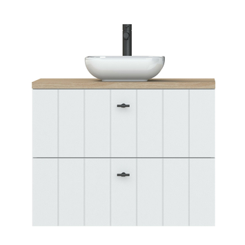 Meuble de salle de bain Tiger Maryport 80 cm blanc mat avec plan lavabo chêne clair, vasque à poser et poignées noir mat