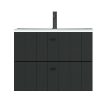 Meuble de salle de bain Tiger Maryport 80 cm noir mat avec lavabo polybéton blanc brillant et poignées noir mat