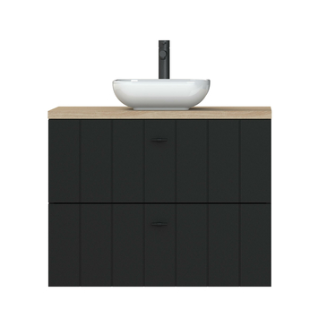 Meuble de salle de bain Tiger Maryport 80 cm noir mat avec plan lavabo chêne clair, vasque à poser et poignées noir mat