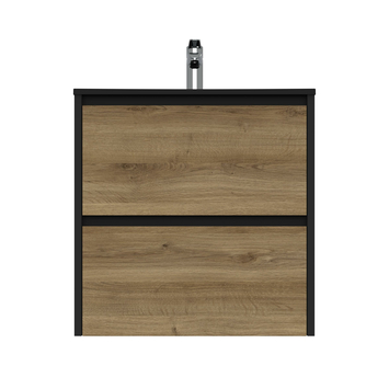 Meuble de salle de bain Tiger Reverse 60 cm 2 tiroirs chêne chalet/noir mat + lavabo Oval noir mat
