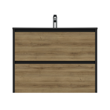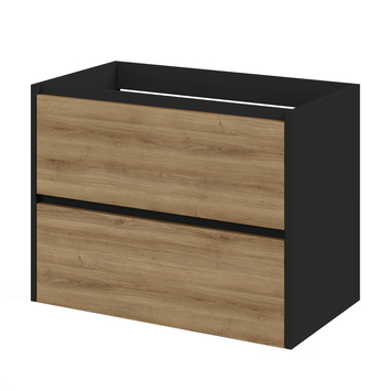 Meuble de salle de bain Tiger Reverse 80 cm 2 tiroirs chêne chalet/noir mat + lavabo Oval noir mat