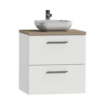 Meuble de salle de bain Tiger Studio 60 cm blanc brillant, poignées carrées avec vasque à poser blanche