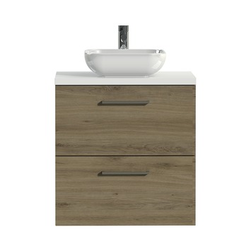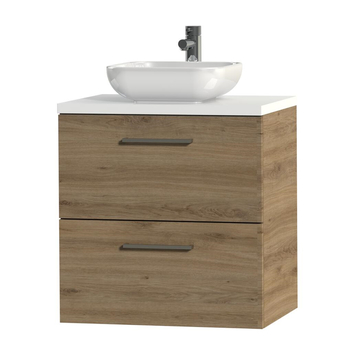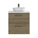 Meuble de salle de bain Tiger Studio 60 cm chêne chalet, poignées carrées avec vasque à poser céramique blanc brillant