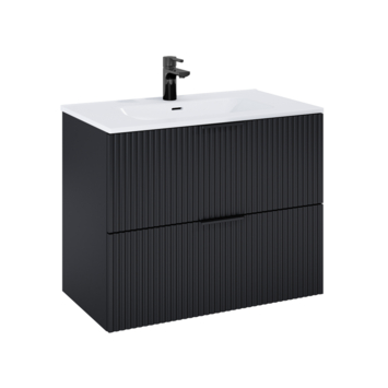 Ce meuble sous lavabo Raff 80 noir au design raffiné apporte une atmosphère apaisante et élégante à toute salle de bain. Son ligne épurée et ses deux tiroirs spacieux à fermeture douce (soft-close) offrent un rangement pratique, sans compromettre le style.