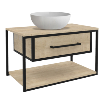 Le meuble sous-vasque Cobalto d'Allibert, accompagné de la vasque blanche Borea d'Allibert, conférera une touche d'originalité et de raffinement à votre espace grâce à son design industriel. Son allure sobre et chic s'harmonise avec divers styles de décoration. Le meuble sous-vasque Cobalto est doté d'une grande capacité de rangement avec son étagère et son tiroir, ce qui le rend idéal pour organiser vos produits et serviettes tout en les gardant accessibles. Pour compléter cet ensemble, optez pour le miroir rond Cobalto avec ses finitions noires (art. 243310) accentuant encore davantage son look industriel.