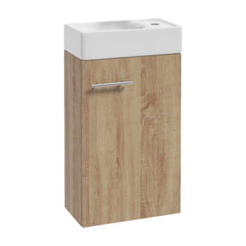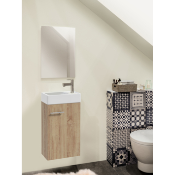 Meubles fontaine Mike Allibert 40 cm chêne avec lavabo porcelaine compact avec grand espace de rangement