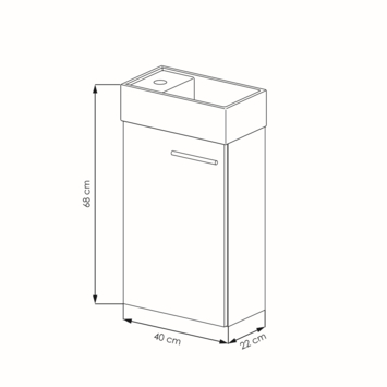 Le lave-mains Allibert MIKE PACK de 40 cm en blanc brillant est un meuble à susprendre et à monter soi-même. L'unité de base mesure 40 cm de large, 68 cm de haut et 22 cm de profondeur. Il a 1 porte avec des charnières réversibles, il peut donc s'ouvrir à droite et à gauche. Ce meuble est dans le coloris chêne mais existe aussi en blanc brillant. Il a une garantie de 2 ans. Le robinet et le siphon peuvent être commandés séparément, ils ne sont pas inclus.