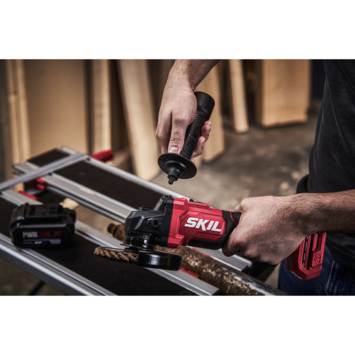 La Skil 3923CA « 20V Max » (18 V) est une meuleuse d'angle sans fil puissante compatible avec les disques de 125 mm. Cet outil est idéal pour un meulage et une coupe faciles et contrôlés grâce à sa poignée souple et à sa poignée fine. Pour plus de confort et de sécurité, le démarrage progressif électronique garantit que la vitesse maximale est atteinte progressivement sans rebond. Grâce au système "CLIC", vous pouvez facilement régler le capot de protection sans aucun outil auxiliaire, afin de pouvoir dévier les étincelles dans n'importe quelle direction souhaitée. Et vous pouvez facilement ajuster la poignée latérale à votre travail grâce aux trois positions confortables. Changer ou remplacer les disques est pratique grâce au système de verrouillage de broche pratique. La protection contre le redémarrage garantit que l'outil ne démarre pas automatiquement lorsque la batterie est insérée. La protection contre les surcharges garantit une durée de vie plus longue à vos outils. Le Skil 3923 CA est fourni sans batterie.