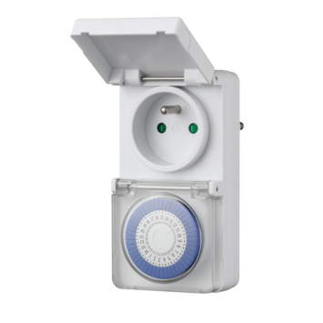 Minuterie journalière mécanique d'une puissance maximale de 3500 W ou 16(2)A. Réglage de l'heure par tranche de 30 minutes. 48 options de commutation.