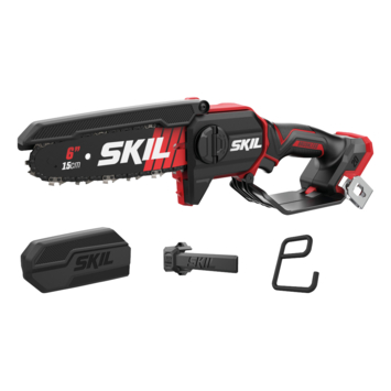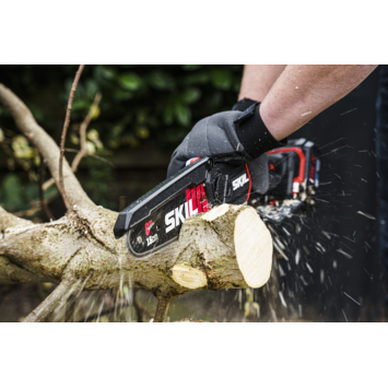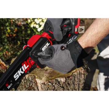 La scie arboricole sans fil 20V Max SKIL 0512, équipée d'un guide et d'une chaîne de 15 cm, permet une élagage et un ébranchage efficaces. Alimentée par une batterie PWRCORE 20™ et un chargeur de pointe, comme les autres outils sans fil 20V Max SKIL, elle bénéficie d'un moteur sans charbon qui est plus rapide, plus puissant et dix fois plus durable qu'un moteur conventionnel à charbons. Elle est dotée d'une lubrification automatique de la chaîne, d'un changement de chaîne sans outil et d'un système de tension automatique, rendant la scie à la fois performante et facile à utiliser. Un capot de protection de la lame assure une sécurité accrue. Capable de couper des branches jusqu'à 150 mm d'épaisseur, elle offre une autonomie de 200 coupes par charge avec une batterie Lithium-Ion de 5,0 Ah pour des branches de 50 mm de diamètre. Son design Easy Storage SKIL exclusif assure un rangement compact après utilisation. La scie SKIL 0512 CA est livrée avec un couvre-lame et un crochet Easy Storage, mais sans batterie ni chargeur.