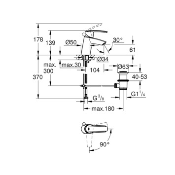 Mitigeur de lavabo Grohe Start S 1 trou avec bonde chromé