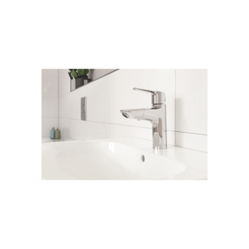 Ce mitigeur de lavabo GROHE Start vous permet non seulement d’économiser l’eau mais également de remettre au goût du jour toute salle de bain moderne. Raffiné et rafraîchi dans son design et sa fonctionnalité, le nouveau GROHE Start a un profil mince et contemporain et une plus grande hauteur de bec pour un plus grand confort d'utilisation. Ce robinet de lavabo à une poignée de taille M est conçu pour être installé dans un seul trou. L'astucieux bec extractible offre une grande flexibilité et est donc parfait pour nettoyer le lavabo ou rincer vos cheveux - et lorsque vous avez terminé, il se rétracte en douceur grâce au système GROHE Magnetic Docking. Le mélangeur est doté d'un vidage à poussoir qui s'ouvre et se ferme d'un léger toucher du bout du doigt. À l'intérieur, la cartouche en céramique GROHE SilkMove offre un contrôle durable et précis du volume et de la température grâce au solide levier métallique. Le limiteur de température intégré permet d'économiser de l'énergie, tandis que la technologie GROHE EcoJoy réduit votre consommation d'eau à 5,7 l/min sans compromettre les performances. Les circuits internes isolés GROHE Zero garantissent que l'eau du robinet est exempte de plomb et de nickel. Fini dans la finition chromée GROHE StarLight, à la fois éblouissante et résistante, ce robinet de salle de bain sera parfait pour les années à venir.