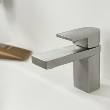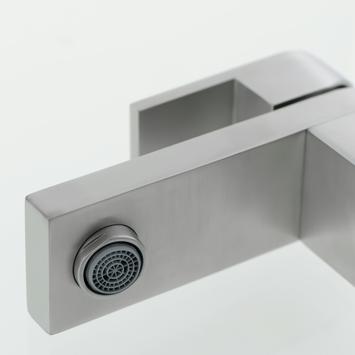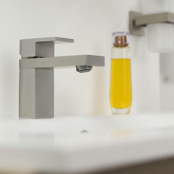 Items démontre avec brio qu'avec moins, on peut en faire plus. Les lignes épurées de ce concept de salle de bains moderne se retrouvent jusque dans l'esthétique des accessoires et des robinets comme ce mitigeur en inox avec Safe Touch. Votre robinet n'est jamais plus chaud que la température de l'eau.