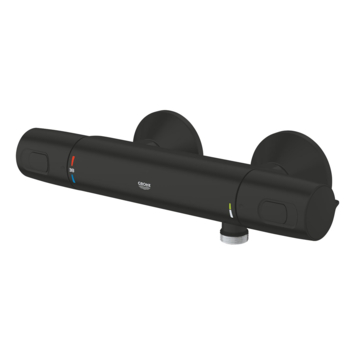 Le mitigeur de douche thermostatique Grohe Precision Trend apporte confort et sécurité à votre salle de bain. Avec son design élégant et sa couleur audacieuse en noir mat, ce mitigeur ajoute une touche de fraîcheur au style de votre salle de bain. Conçu avec des poignées ergonomiques Grohe MetalGrip, l'utilisation du mitigeur se fait sans effort, même avec des mains savonneuses. Sous la douche, vous obtiendrez la température de l'eau souhaitée en quelques secondes et elle restera constante grâce au Grohe TurboStat. Grohe CoolTouch garantit que l'extérieur du robinet thermostatique ne devient pas trop chaud, de sorte que vous pouvez toujours le toucher sans vous brûler. De plus, le bouton Grohe SafeStop limite la température de l'eau à 38°C. Idéal, car il empêche les enfants de régler involontairement la température de l'eau à un niveau trop élevé. En cas de défaillance soudaine de l'alimentation en eau froide, une coupure de sécurité automatique garantit que le jet d'eau est réduit au minimum. Saviez-vous qu'avec cet élégant mitigeur de douche, vous faites également un geste pour l'environnement ? Conçu avec un limiteur de débit Grohe Water Saving et EcoButton, il vous permet d'économiser de l'eau et de l'énergie sans compromettre le plaisir de la douche. Ce robinet de douche noir mat est non seulement durable, mais il conserve également son aspect impeccable grâce à la finition Grohe Long-Life, facile d'entretien et résistante à l'usure. Créez la combinaison ultime de style et de fonctionnalité dans votre salle de bain avec le mitigeur de douche thermostatique Grohe Precision Trend.