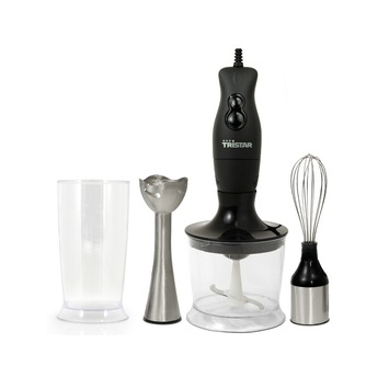 Ce set mixeur-plongeur luxueux comprend un pied et fouet en inox, un hachoir de 500 ml et un bol gradué. La poignée softouch en caoutchouc permet une bonne prise en main.