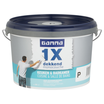 GAMMA Monocouche couvrant Cuisine et salle de bain est une peinture murale mate parfaitement couvrante résistante aux moisissures et à l’humidité. Elle est idéale pour les murs et plafonds dans les locaux humides tels que la cuisine et la salle de bain. Au-delà de rendre les murs lavables, cette peinture est respirante, faiblement odorante et facile à appliquer. Selon la couleur et la qualité du support, cette peinture couvre en une seule couche.
