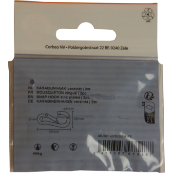 Rapidement besoin d’un point d’attache ? Pensez au mousqueton en métal zingué de 50 mm. Un mousqueton est un anneau avec un doigt monté sur charnière dans lequel on peut glisser une corde, un anneau ou autre. Il vient à point chaque fois qu’il faut attacher rapidement deux choses l’une à l’autre. Ce mousqueton est fabriqué en métal zingué, résistant à la rouille. Il a donc une plus grande longévité et peut être utilisé à l’extérieur. Cet article est emballé par deux pièces. Bref, le mousqueton est simple, rapide et efficace.