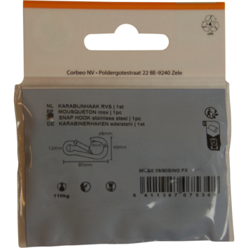 Rapidement besoin d’un point d’attache ? Pensez au mousqueton en inox de 80 mm. Un mousqueton est un anneau avec un doigt monté sur charnière dans lequel on peut glisser une corde, un anneau ou autre. Il vient à point chaque fois qu’il faut attacher rapidement deux choses l’une à l’autre. Ce mousqueton est fabriqué en acier inoxydable, résistant à la rouille. Il a donc une plus grande longévité et peut être utilisé à l’extérieur. Bref, le mousqueton est simple, rapide et efficace.