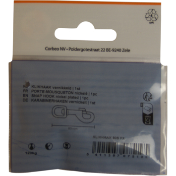 Besoin d’un anneau pour y accrocher vos clés ? Pensez au mousqueton de 80 mm. Il est nickelé, de sorte qu’il résiste à la corrosion. Le mousqueton possède un doigt mobile et un anneau pivotant, très pratiques. Il servira par exemple à relier le collier et la laisse de votre chien. Bref, un accessoire indispensable pour accrocher et décrocher une multitude de choses.