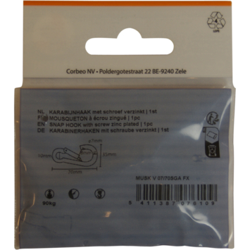 Mousqueton avec écrou Ledent galvanisé 70 mm