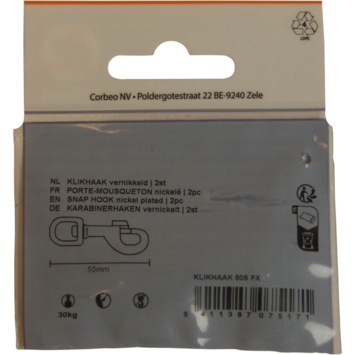 Mousqueton Ledent nickelé 50 mm 2 pièces