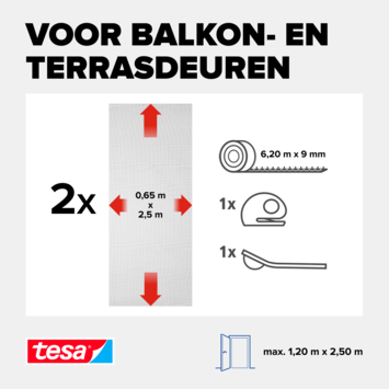 Avec ses dimensions de 120 × 250 cm et sa conception en deux panneaux de 65 cm, elle s’adapte à la majorité des portes standards. Le système de fixation permet une utilisation répétée, saison après saison, sans altérer l’efficacité du filet.