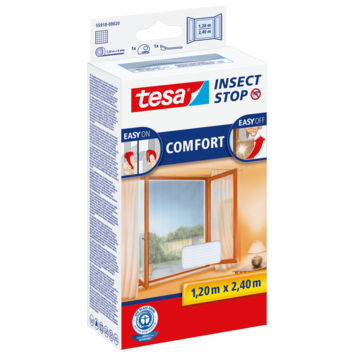 La moustiquaire tesa® Insect Stop COMFORT offre une protection efficace contre les insectes grâce au velcro qui vous permet de garder vos fenêtres ouvertes sans que les insectes ne puissent y entrer. Elle est disponible en deux couleurs et deux tailles, adaptée à la plupart des cadres. Grâce au système facile à mettre et à enlever, elle est rapide et facile à installer et à retirer. Utilisez la bande velcro incluse pour la coller sur le cadre de la fenêtre et l’outil de pression pour appuyer fermement la toile contre le ruban. Pour retirer à nouveau la moustiquaire, il suffit de la retirer.