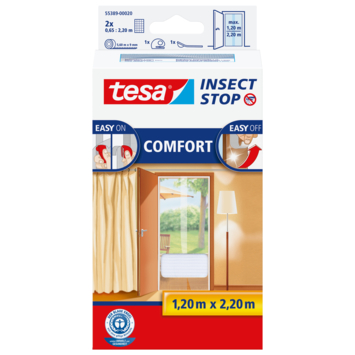 La moustiquaire tesa® Insect Stop COMFORT Velcro blanche pour portes est une protection très efficace contre les moustiques qui s’adapte à la plupart des portes de terrasse et de balcon. Avec cet écran fonctionnel, vous pouvez laisser la porte ouverte sans vous soucier des moustiques ou autres insectes. Grâce à un système velcro spécial, l’insertion et le retrait sont rapides et faciles. Il vous suffit de coller la bande velcro sur le cadre de la porte et d’utiliser l’outil de pression inclus pour appuyer fermement la maille contre celle-ci. C’est tout! Votre maison est maintenant exempte d’insectes gênants. Pour le retirer, il suffit de tirer sur le filet et le ruban adhésif se détachera.