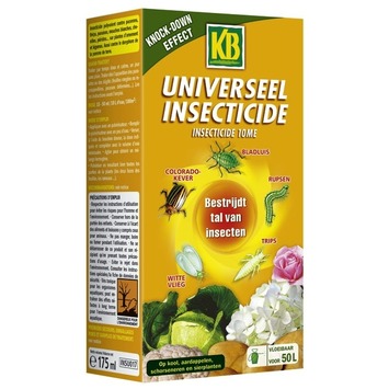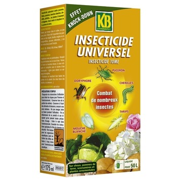 L'insecticide universel KB protège vos pommes-de-terre, choux, salsifis et plantes ornementales contre quantité d'insectes tels que les pucerons, les doryphores, les mouches blanches, les chenilles et les thrips. Résultat visible après 24h. À utiliser de préférence quand il ne pleut/gèle pas. Conseil : utilisez les biocides avec précaution. Lisez l'étiquette et les informations relatives au produit avec chaque utilisation.
