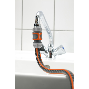 Stalen aansluitpunt op kraan geweldig ( plastic aansluiting van Gardena werkt niet