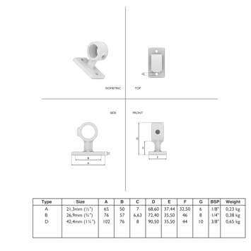 Novidade support de rampe Galvanisé Ø 21mm10.39
