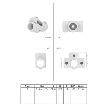 Novidade T-sortie latérale Noir Ø 21mm16.38